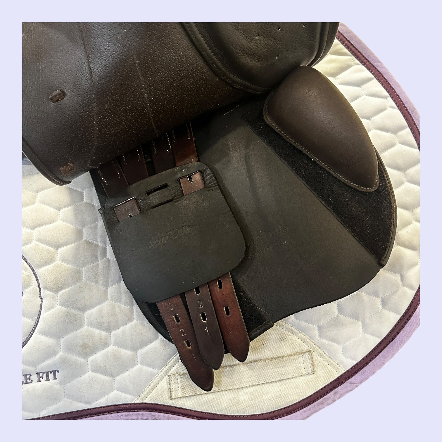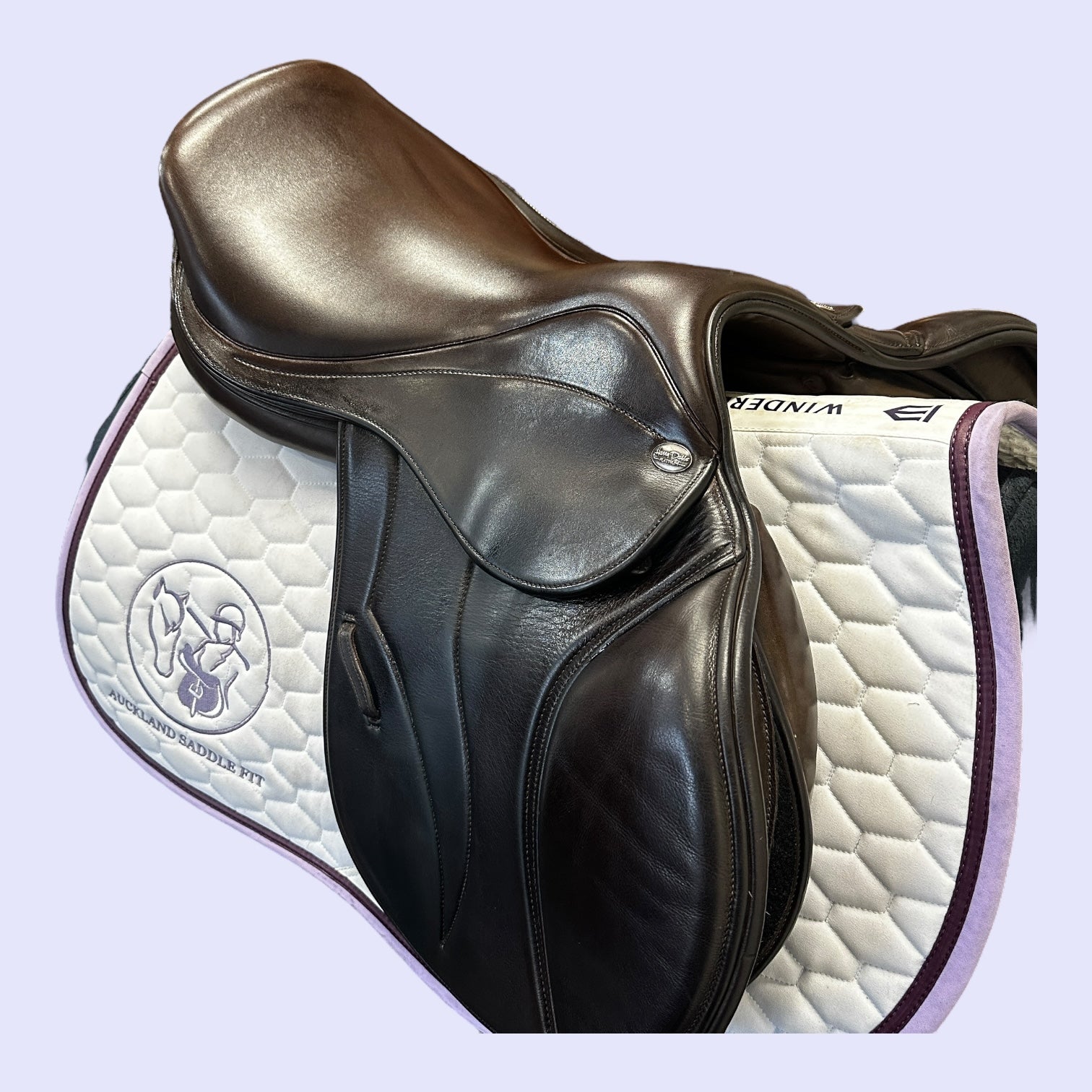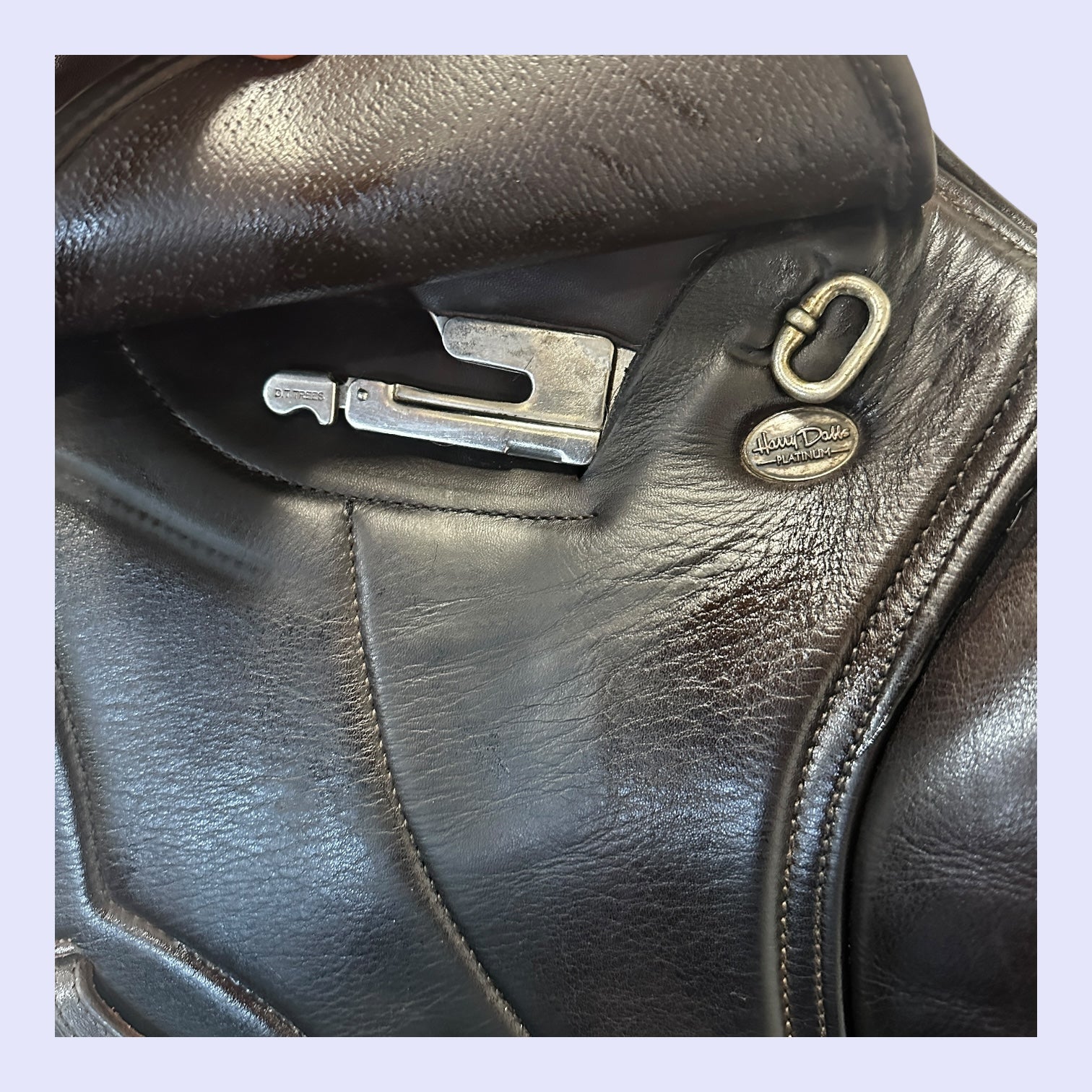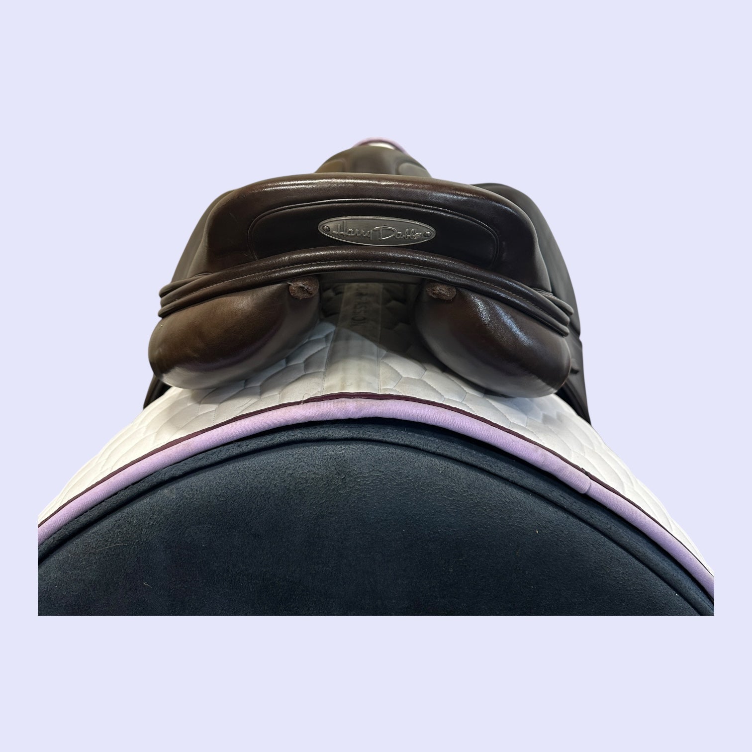 The Harry Dabbs Platinum Jump saddle is a high-end jumping saddle known for its innovative design and premium quality. Made in England with a laminated wooden spring tree and wool-flocked panels, it features high-grade European and Italian calf leather for a luxurious feel. This saddle is available with a variety of custom options, including different flap positions, blocks, seat depths, and a multitude of leathers and decorative elements.