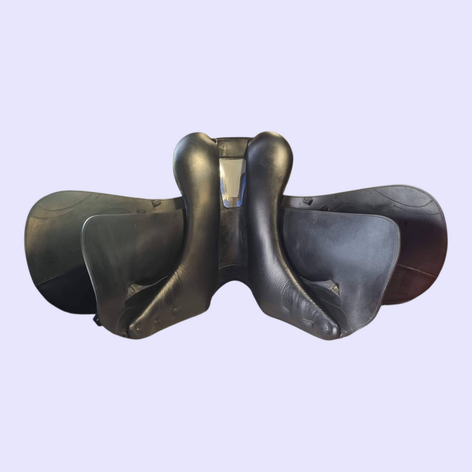 Setback Tree Points: The tree points (the "legs" of the saddle frame) are angled slightly further back than usual. This allows the saddle to be positioned correctly for the rider without interfering with the rotation of the horse’s scapula (shoulder blade).